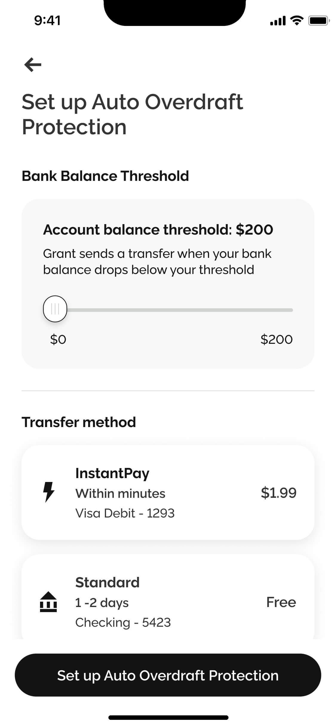 Accede a protección contra sobregiros con Grant Plus¹ y recibe un adelanto en tu cuenta bancaria cuando tu saldo esté bajo.